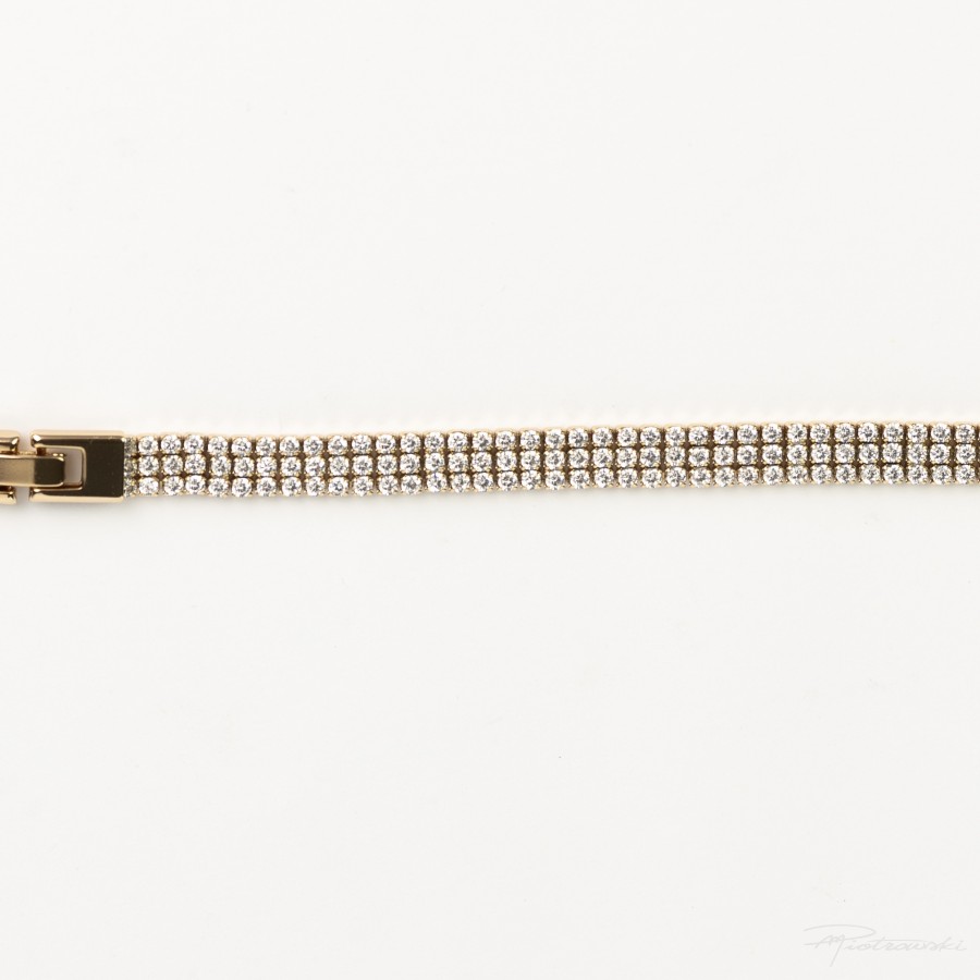 Spektakularna bransoletka wysadzana trzema rzędami lśniących cyrkonii. Jej mocny blask i elegancki design sprawiają, że doskonale zastąpi wieczorowy dodatek, ale też doda luksusowego charakteru codziennym stylizacjom.