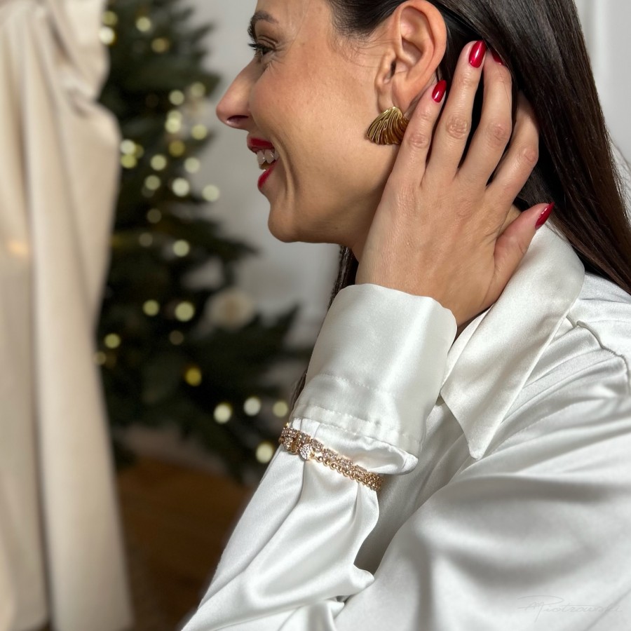 Wykonane z wysokiej jakości stali szlachetnej (antyalergicznej), są trwałe, odporne na zarysowania i bezpieczne dla skóry. Stal szlachetna to doskonały materiał jubilerski – nie uczula, nie ciemnieje i przez lata zachowuje swój blask. Zapięcie na sztyft zapewnia wygodę, a złocone wykończenie pięknie odbija światło, dodając całości klasy i elegancji.