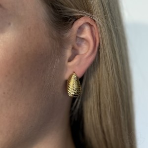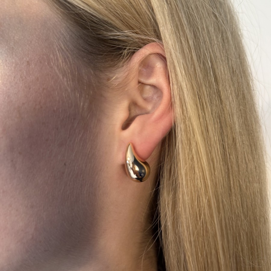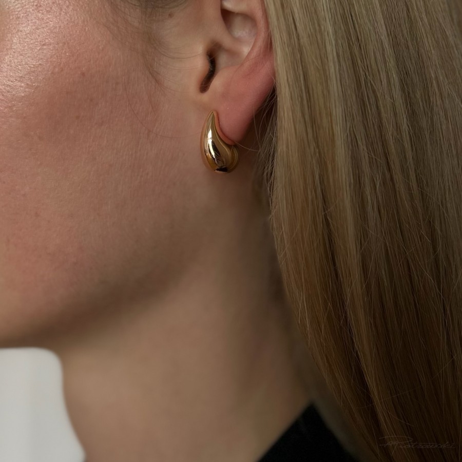 Minimalistyczne kolczyki o długości 1,8 cm w formie delikatnej kropli. Ich złocone wykończenie dodaje blasku i elegancji, a opływowy kształt sprawia, że pięknie prezentują się na uchu. To doskonały wybór zarówno na co dzień, jak i na specjalne okazje – subtelne, a jednocześnie wyraziste.