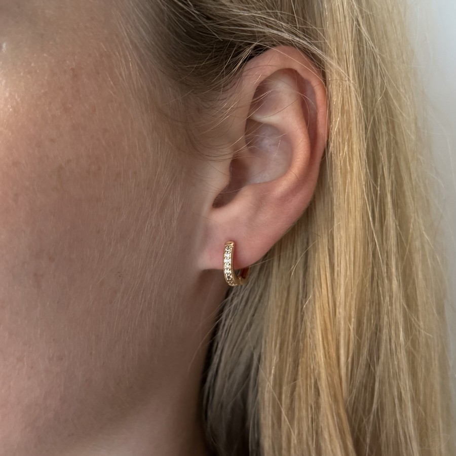 Kolczyki małe kółeczka z cyrkoniami – 1,3 cm