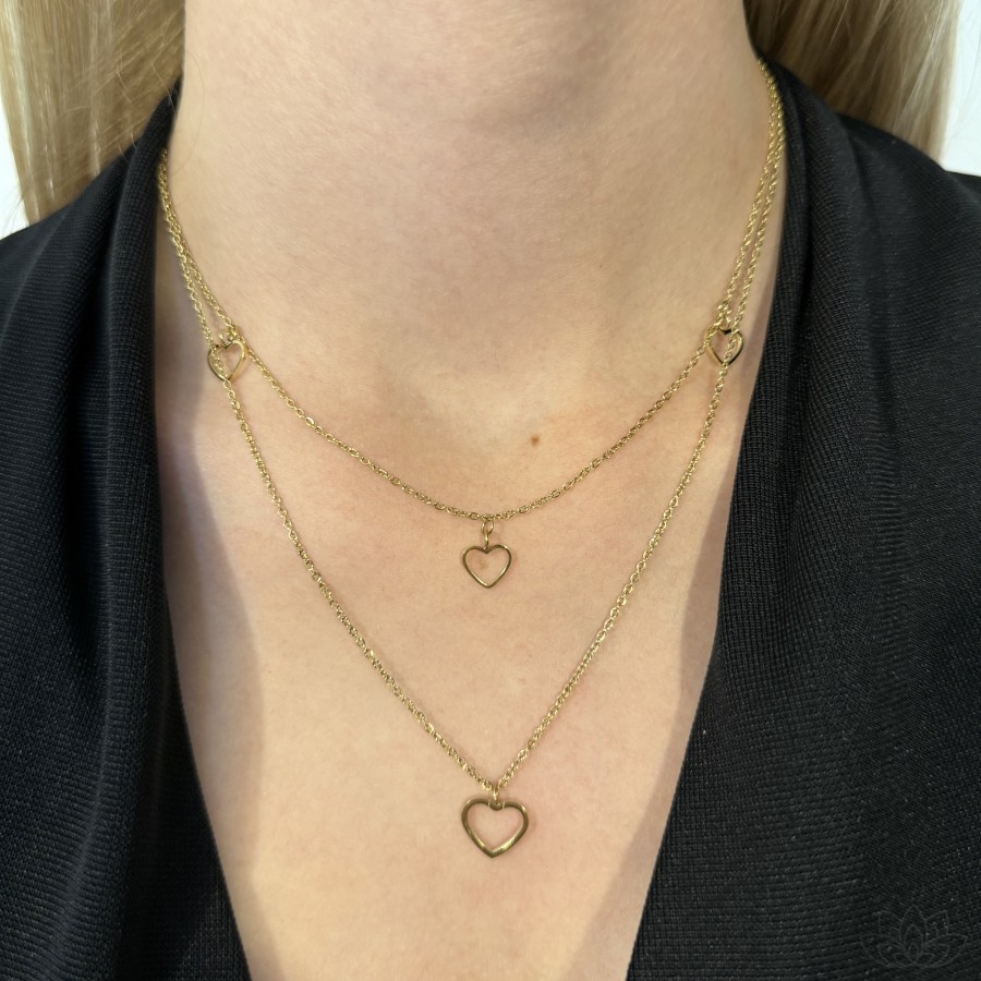 Naszyjnik podwójny ze stali szlachetnej – złoty z sercami